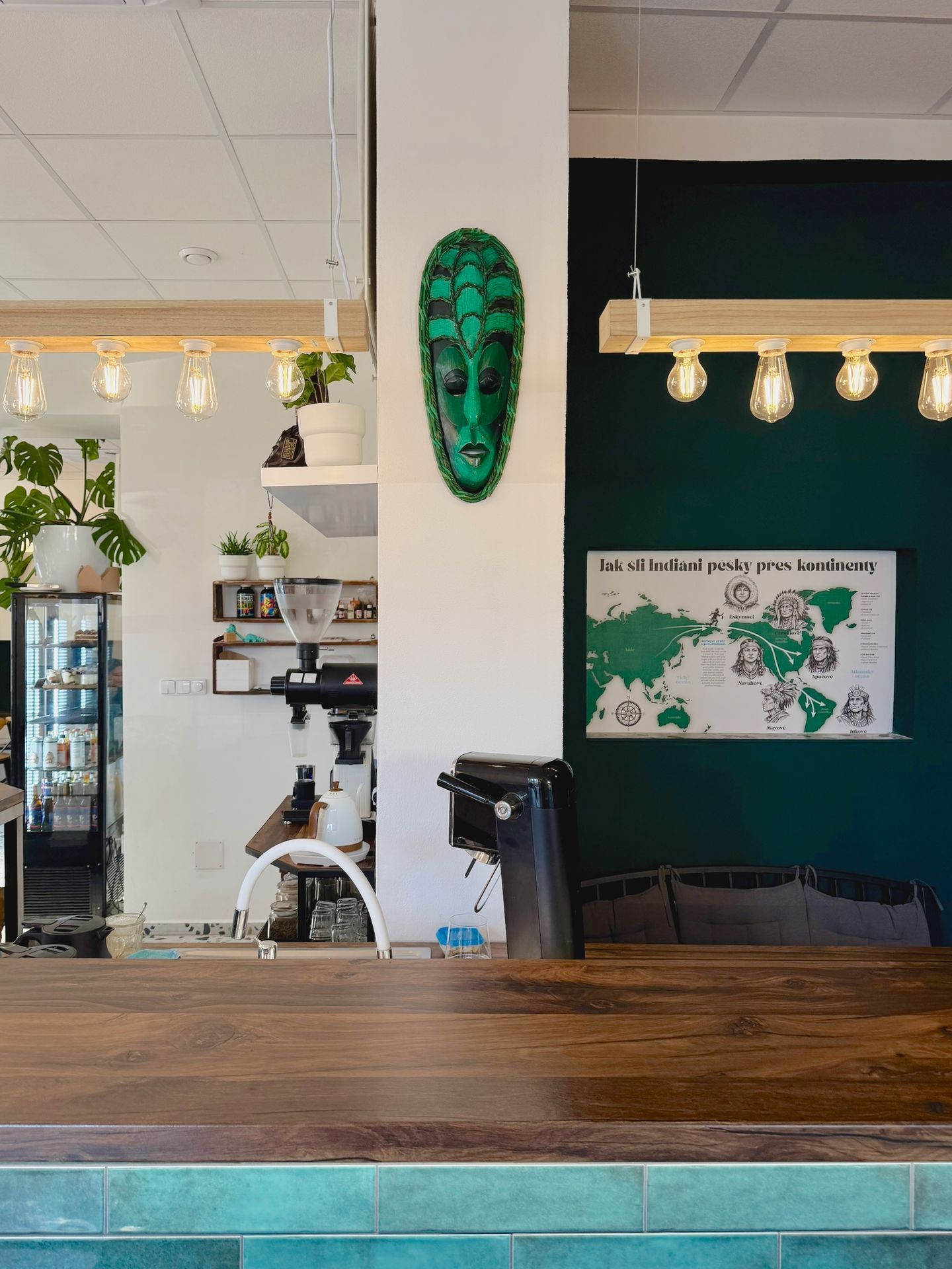 Interiér s duší Indiánů, džungle a zároveň minimalismu. Výběrová káva, která se neomrzí. Každý den na hlavním mlýnku ovocné funky espresso, Brazílie na druhém mlýnku a dva druhy filtrované kávy. Brunche z čerstvých surovin. Drinky a limonády z našich sirupů. A usměvavá obsluha!